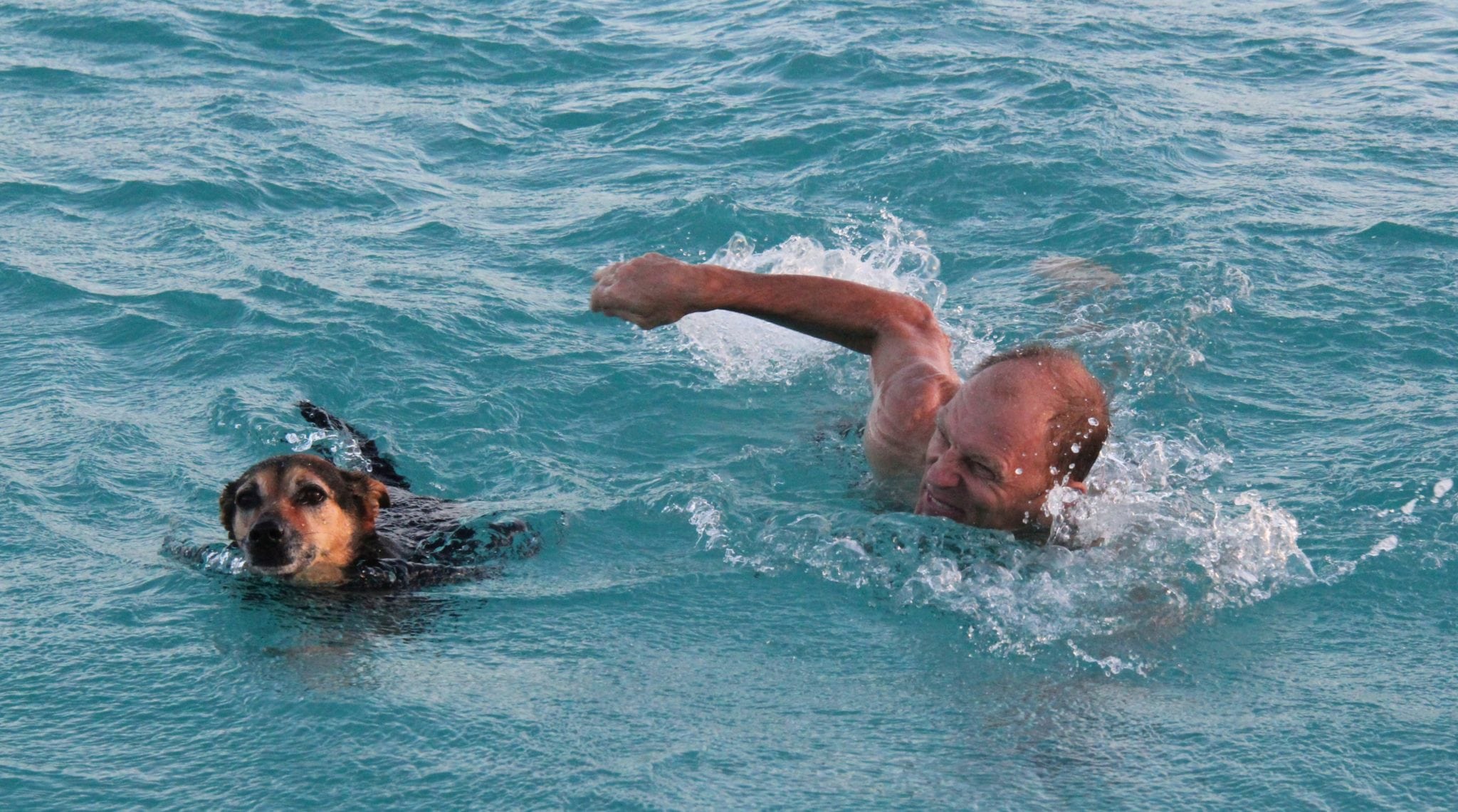 Bruce’s dog Biana is a former Potcake, now fully civilized. During our boating afternoon, Biana grew seasick but jumped overboard rather than vomit in her master’s vessel. Bruce cut the motor, dove in and brought his canine back aboard; then she threw up.
