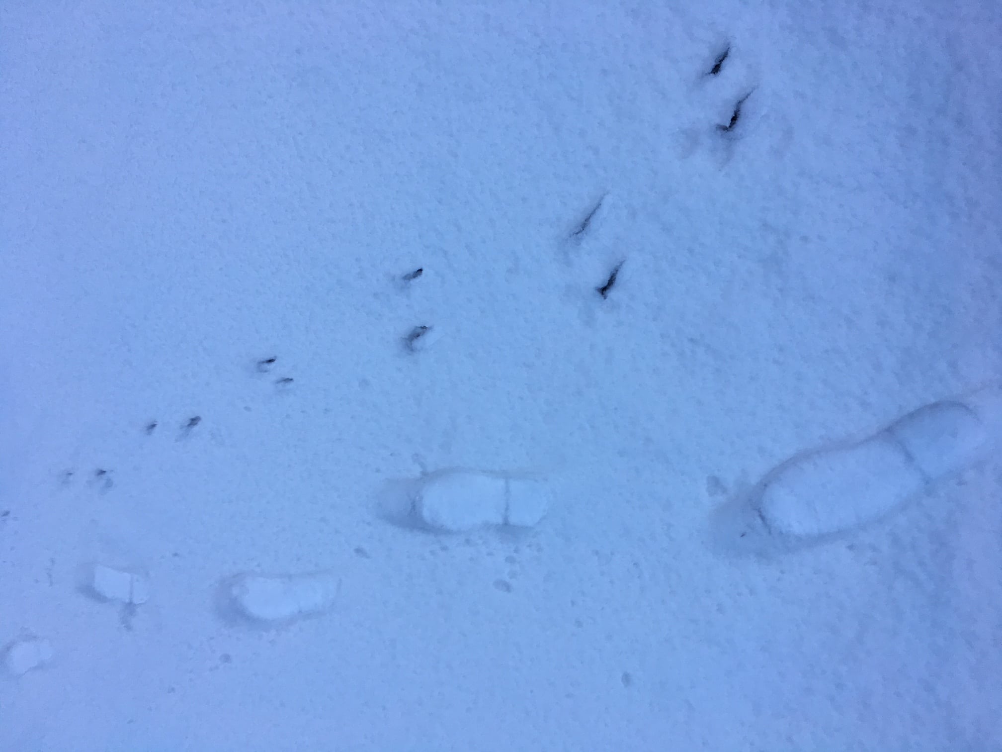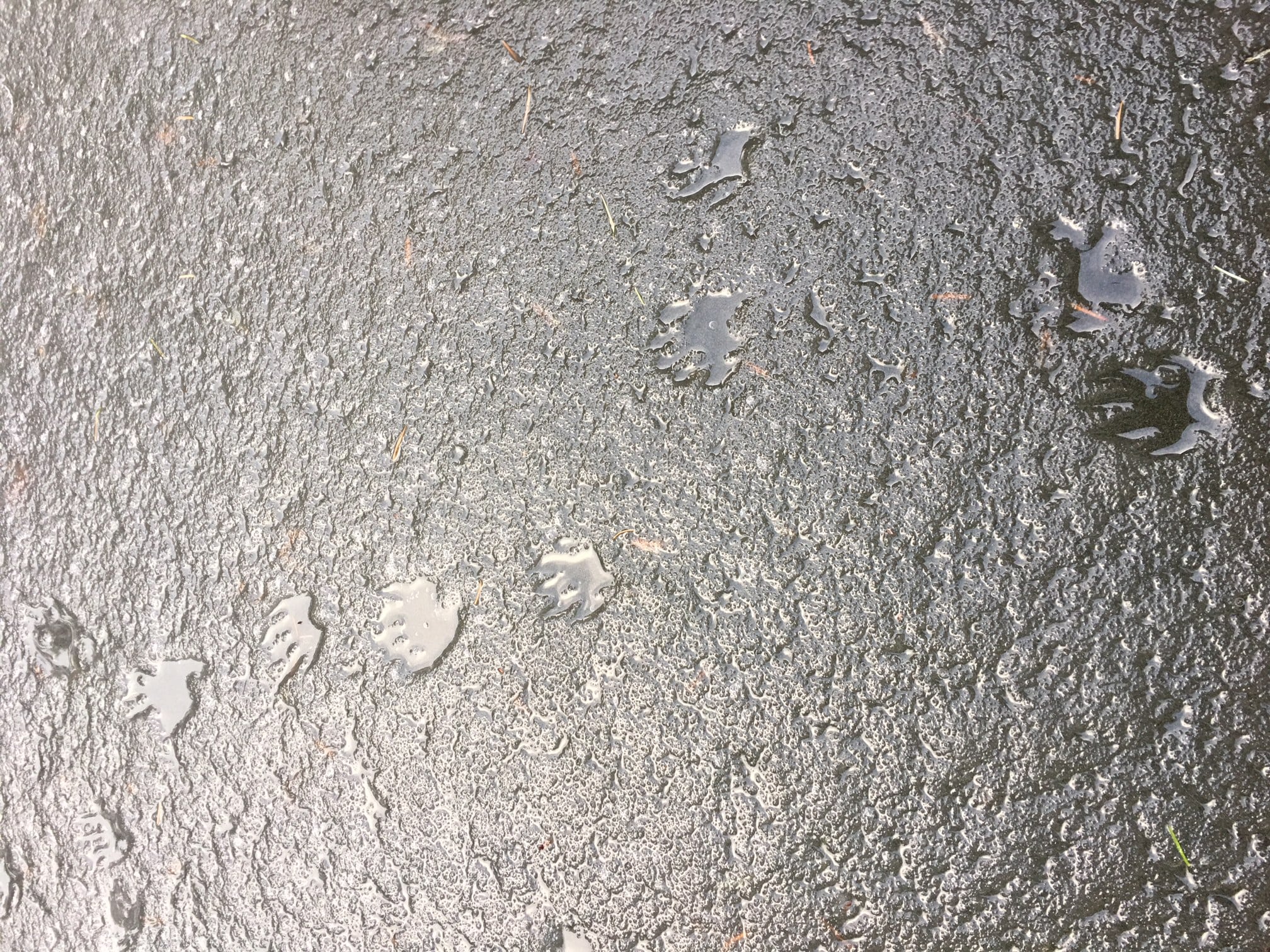 Walking up the gravel road, I spied some jumpy tracks heading for the water. They weren’t deer and yet were big enough to suggest purposeful travel to the ocean’s edge, 50 metres away. Squirrel? Mink? Maybe even a sluuguu heading out to fish?