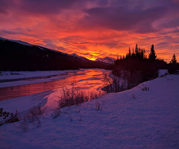 Two friends and I visited Marmot during the Jasper in January festivities. Though it had been days since a snowfall, we were still able to find patches of powder, especially on the higher runs. We spent our days on the upper half of the mountain by grabbing decadent lunches of poutine and beef at the mid-mountain Eagle Dining Room, washed down with Jasper Crisp Pils – a fine local brew.